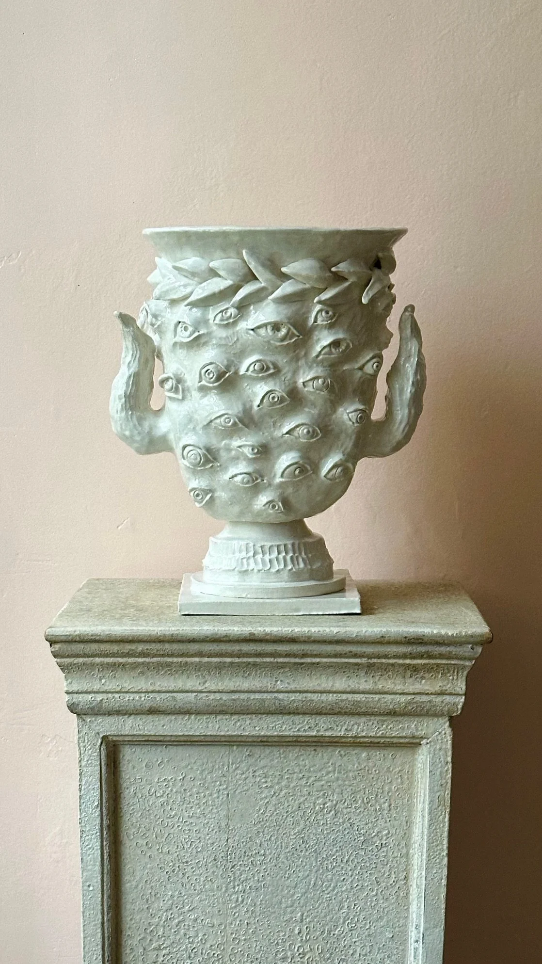 Argus Urn, 11.5w x 13.5t x 6.5d, glazed ceramic,